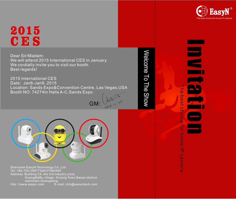 我司將于美國時間2015年一月6號至9號在拉斯維加斯參加2015國家消費類電子產(chǎn)品展會(CES),展位號為SANDS 74274.屆時歡迎新老客戶參觀考察我們的展位。